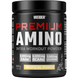 Premium Amino Powder Pulver von Weider mit Tropical Punch Geschmack in der 0.8KG Packung. Premium Amino Powder von Weider Eine premium Mischung, die alles enthält was du während ein intensives Workout brauchst! Hochwertige Kohlenhydrate, Aminosäuren und Elektrolyte. Für ein premium Workout!