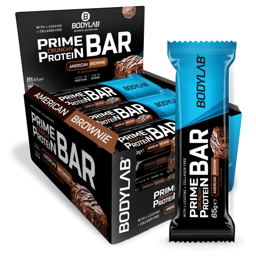 Prime Crunchy Protein Bar Riegel von Bodylab24 mit American Brownie Geschmack in der 0.78KG Packung. Prime Crunchy – der 65 g Protein Riegel von BODYLAB mit 21 g Eiweiß je Portion In lecker schokoladigem American Brownie Geschmack, angereichert mit L-Leucin und 100% vegetarisch (kollagenfrei). Ein Top Riegel zur Nutzung rund ums Training mit dem Plus für deinen Muskelaufbau. Mit seinen 21 g Protein und dem Zusatz an 3,1 g Leucin liefert der Prime Crunchy Protein Bar eine satte Portion Eiweiß je 65 g Riegel für deinen Muskelaufbau und -erhalt. L-Leucin (oder L-Leucine) zählt zu den verzweigtkettigen BCAA Aminosäuren (ebenso wie Valin und Isoleucin) und gehört zu den lebensnotwendigen (essenziellen) Aminosäuren, die über die Nahrung aufgenommen werden müssen. Im Körper ist L-Leucin insbesondere für den Aufbau von neuem Gewebe wichtig und dabei besonders wertvoll für Muskelaufbau und – erhalt. Auf eine ausreichende Versorgung, neben der allgemeinen Aufnahme von Eiweiß und damit allen Aminosäuren, sollten daher besonders intensiv und hart trainierende Sportler achten. Der Primie Crunchy Protein Bar ist lecker knusprig – durch die enthaltenen Soja-Crispies, liefert Eiweiß zum Großteil aus Milcheiweiß (fast 32%) und kann von Sportlern wie Nicht-Sportlern rund um Sport, andere Freizeitaktivitäten, im Alltag oder im Büro genutzt werden. Als Ersatz für eine Süßigkeit, als zusätzlicher Eiweißlieferant und/oder kleine Zwischenmahlzeit unterwegs. Leckere Eiweißversorgung zwischendurch und rund ums Training mit dem Prime Crunchy Protein Bar.In der praktischen Vorratsbox mit 12 Riegel zu je 65 g und in satt schokoladigem American Brownie Geschmack, mit crunchigen Soja-Crispies und Schokoladenüberzug. BITTE BEACHTE: Das Produkt wird ungekühlt geliefert und kann deshalb bei hohen Außentemperaturen schmelzen.