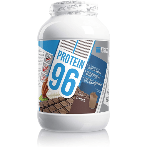 Protein 96 Pulver von FREY Nutrition mit Schoko Geschmack in der 2.3KG Packung. FREY Nutrition – Protein 96 Das Protein 96 ist wahrlich ein einzigartiges Eiweiß-Produkt! Es erreicht durch die verschiedenen Proteinkomponenten wie Milchprotein, Molkenprotein-Isolat, Molkenprotein-Konzentrat und Eiprotein eine unglaublich hohe biologische Wertigkeit von über 136! Der Proteingehalt liegt bei durchschnittlich 96 % i. Tr. Protein 96 schmeckt sowohl mit Milch als auch mit Wasser – da es auf Wasserbasis entwickelt wurde – und lässt sich leicht (ohne Mixer) zubereiten. Vorteile sehr hoher Proteinanteil von bis zu 100 % Protein i. Tr. sehr hohe biologische Wertigkeit von über 136 kann sowohl mit Milch als auch mit Wasser verzehrt werden sehr gute Löslichkeit, kein Verklumpen leckerer und cremiger Geschmack Protein 96 – 2300g – Schoko hat die PZN 10534234. Protein 96 – 2,3 kg von FREY Nutrition besitzt einen sehr hoher Proteinanteil von bis zu 100 % Protein i. Tr.