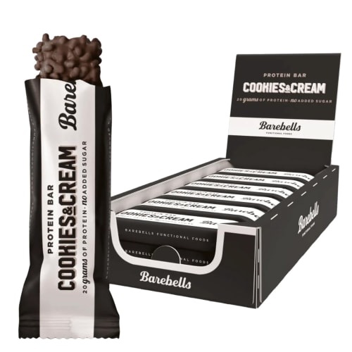 Protein Bar Riegel von Barebells mit Cookies & Cream Geschmack in der 0.66KG Packung. NOCCO – Barebells Protein Bar 12 x 55 g Barebells Protein Bar – Vorteile: je Riegel 20g Eiweiß mit Ballaststoffen unter unter 2g Zucker leckere Geschmackvarianten einzeln verpackt zum idealen Transport Hauptinhaltsstoffe – was ist in den Barebells Protein Bar drin? Die leckeren Barebells Proteinriegel, in Cookies & Cream, Caramel Cashew und Coconut Chocolate Geschmack, enthalten neben satten 20g Eiweiß je 55g Riegel relativ wenig Kohlenhydrate und unter 2g Zucker (Bsp. Geschmack Cookies & Cream). Mit je knapp 200 kcal liegen sie am unteren Rand der zahlreich verfügbaren Proteinriegel. Wann und wer nutzt die Barebells Protein Bar? Die Eiweißriegel können von allen aktiven Menschen und Sportlern als kleine Zwischenmahleit im Alltag oder unterwegs konsumiert werden. Durch den Eiweißanteil unterstützen sie die Proteinversorgung der Muskeln und liefern allen körperlich aktiven Menschen eine Extra-Portion Eiweiß. Der Barebells Protein Bar kann daher auch nach dem Training als Ergänzung oder Alternative zum Eiweißshake konsumiert werden. Wer sich über Nacht mit Eiweiß versorgen will, sollte/kann vor dem Schlafengehen noch einen Caseinshake trinken, da das langsam verdauliche Protein nicht im Riegel enthalten ist.Durch den geringen Zucker- und Kohlenhydratanteil, kann der Riegel auch in Low Carb- und Diätphasen beim Abnehmen als Süßigkeitenersatz und Eiweißlieferant dienen. Einnahmezeitpunkt? Der Barebells Protein Bar kann je nach Bedarf zu verschiedenen Zeiten des Tages gegessen werden. Er ist ideal als kleine Zwischenmahlzeit unterwegs oder im Büro. Die leckeren Barebells Proteinriegel enthalten 20g Eiweiß je 55g Riegel, wenig Kohlenhydrate und unter 2g Zucker.