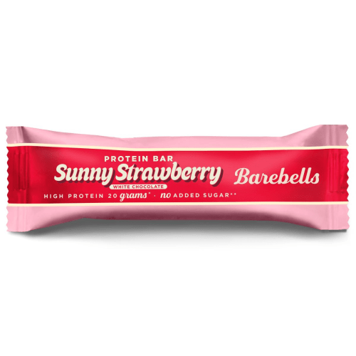Protein Bar Riegel von Barebells mit Sunny Strawberry Geschmack in der 0.055KG Packung. Der neue Proteinbar Sunny Strawberry vereint sonnengereifte Erdbeeren mit zarter weißer Schokolade und bietet mit 20 Gramm Protein und ohne zugesetzten Zucker den perfekten Snack für den Sommer! Die leckeren Barebells Proteinriegel enthalten 20g Eiweiß je 55g Riegel, wenig Kohlenhydrate und unter 2g Zucker.
