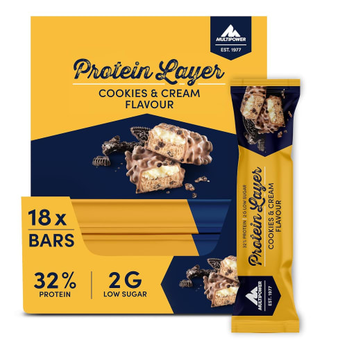Protein Layer Riegel von Multipower mit Cookies & Cream Geschmack in der 0.9KG Packung. Protein Layer Caramel Peanut Crunch von Multipower Die unterschiedlichen Schichten des Protein Layer machen diesen zu einem köstlichen Proteinriegel und einer leckeren Alternative zur Deckung des täglichen Proteinbedarfs. Neben seinem außerordentlichen Geschmack besitzt er einen hohen Proteinanteil von 30%. Der Proteingehalt unterstützt deinen Muskelaufbau. Damit ist der Powerlayer der perfekte Protein Snack für zwischendurch. Der Protein Layer Riegel von Multipower zeichnet sich durch mehrere besondere Merkmale aus: 1. Hochwertiges Protein: Jeder Riegel bietet einen beeindruckenden Proteinboost, der die Muskelregeneration und das Muskelwachstum unterstützen kann. 2. Layer-Struktur: Der Riegel ist in mehrere Schichten aufgeteilt, was ein einzigartiges Kau- und Geschmackserlebnis bietet. Der Crunch-Effekt der Schichten macht jeden Biss zu einem echten Genuss. 3. Perfekt für unterwegs: Egal, ob du im Fitnessstudio, auf der Arbeit oder auf einem Abenteuer unterwegs bist, dieser handliche Riegel passt in jede Tasche und versorgt dich mit der nötigen Energie. 4. Keine Kompromisse: Bei uns musst du keine Kompromisse eingehen. Du bekommst großartigen Geschmack und hochwertiges Protein ohne übermäßigen Zucker oder Fett. Die Protein Layer Riegel von Multipower sind mehr als nur ein Snack – sie sind ein Geschmackserlebnis! Ob du sie vor oder nach dem Training genießt oder einfach nur als leckere Zwischenmahlzeit – …