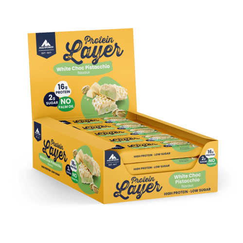 Protein Layer Riegel von Multipower mit White Chocolate Pistachio Geschmack in der 0.9KG Packung. Der Protein Layer Riegel von Multipower zeichnet sich durch mehrere besondere Merkmale aus: 1. Hochwertiges Protein: Jeder Riegel bietet einen beeindruckenden Proteinboost, der die Muskelregeneration und das Muskelwachstum unterstützen kann. 2. Layer-Struktur: Der Riegel ist in mehrere Schichten aufgeteilt, was ein einzigartiges Kau- und Geschmackserlebnis bietet. Der Crunch-Effekt der Schichten macht jeden Biss zu einem echten Genuss. 3. Perfekt für unterwegs: Egal, ob du im Fitnessstudio, auf der Arbeit oder auf einem Abenteuer unterwegs bist, dieser handliche Riegel passt in jede Tasche und versorgt dich mit der nötigen Energie. 4. Keine Kompromisse: Bei uns musst du keine Kompromisse eingehen. Du bekommst großartigen Geschmack und hochwertiges Protein ohne übermäßigen Zucker oder Fett. Die Protein Layer Riegel von Multipower sind mehr als nur ein Snack – sie sind ein Geschmackserlebnis! Ob du sie vor oder nach dem Training genießt oder einfach nur als leckere Zwischenmahlzeit – dieser Riegel wird deine Erwartungen übertreffen. Mit 18 Riegeln in einer Packung hast du genug, um deinen Proteinbedarf zu decken und dabei die einzigartige Qualität unserer Riegel zu erleben. Gönn dir jetzt die Extraportion Genuss und Power mit den Protein Layer Riegeln! Protein Layer von Multipower Die unterschiedlichen Schichten des Protein Layer machen diesen zu einem köstlichen Proteinriegel und einer leckeren Alternative zur Deckung des täglichen Proteinbedarfs. Neben seinem außerordentlichen Geschmack besitzt er einen hohen Proteinanteil von 30%. Der Proteingehalt unterstützt deinen Muskelaufbau. Damit ist der Protein Layer der perfekte Protein Snack für zwischendurch.