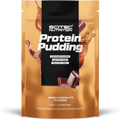 Protein Pudding Pulver von Scitec Nutrition mit Double Chocolate Geschmack in der 0.4KG Packung. Scitec Nutrition – Protein Pudding Leckerer Protein Pudding von Scitec Nutrition! Der ideale Abschluss für Deine Hauptmahlzeit oder als kleiner, proteinreicher Snack für zwischendurch. Protein Pudding von Scitec Nutrition – Vorteile: 30g Protein je Portion Casein und Whey als Proteinquelle unter 2g Zucker je Portion Was beinhaltet der Protein Pudding von Scitec Nutrition? Das Pulver enthält je 40g Portion 30g Protein, unter 2g Kohlenhydrate und Zucker und 1 Portion hat mit Wasser gemischt etwas mehr als 140kcal. Als Eiweißquellen sind Calciumcaseinat und Molkenprotein-Konzentrat im Pulver enthalten. Warum Protein Pudding? Wer mag nicht eine kleine Leckerei nach dem Essen oder einfach mal zwischendurch? Der Protein Pudding bietet eine schnell zubereitete und dabei proteinreiche Kleinigkeit, die sich als Dessert zu Deiner Hauptmahlzeit eignet oder einfach als kleine Zwischenmahlzeit. Shaker, Protein Pudding Pulver und Wasser – mehr brauchst Du nicht. Pulver und Wasser im Shaker kräftig schütteln – fertig.Besonders in Muskelaufbau- und intensiven Trainingsphasen benötigt der Körper ausreichend Protein – der leckere Pudding kann dabei eine Alternative zum klassischen Wheyshake darstellen und die Proteinversorgung anreichern. Wie wird der Protein Pudding verwendet und wer nutzt ihn? Mische für 1 Portion 40g Protein Pudding Pulver mit 250ml Wasser in einem Shaker, kräftig schütteln, bis die Mischung eindickt. In eine Schüssel füllen, nach Deiner Hauptmahlzeit als Dessert genießen oder als kleinen, süßen aber proteinreichen Zwischensnack. Je nach Geschmack kannst Du den Pudding vor dem Verzehr einige Zeit in den Kühlschrank stellen. Den fertig zubereiteten Pudding kühl lagern (Kühlschrank) und innerhalb von 2 Tagen verzehren.Der Protein Pudding kann von allen aktiven Menschen zur Anreicherung ihrer Proteinversorgung verwendet werden. Jede Portion Protein Pudding von Scitec Nutrition liefert 30g Protein bei unter 2g Zucker.