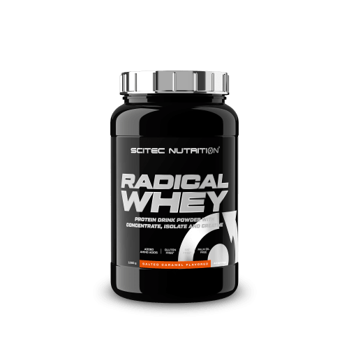 Radical Whey Pulver von Scitec Nutrition mit Salz-Kamarell Geschmack in der 1KG Packung. Radical Whey – für alle, die mehr wollen als nur Eiweiß! Radical Whey von Scitec Nutrition ist mehr als nur ein klassisches Proteinpulver. Die Kombination aus hochwertigem Whey-Protein, zusätzlichen Aminosäuren und Creatin macht es zur idealen Unterstützung für dein Training. Ob vor oder nach dem Training – Radical Whey versorgt deinen Körper mit allem, was er braucht.. Erhältlich in vier köstlichen Geschmacksrichtungen: Schokolade, Vanille, Cookies & Cream und Salz-Karamell. Wähle zwischen 1 kg und 2 kg – ganz nach deinem Bedarf. Radical Whey ist die smarte Wahl für alle, die mehr erwarten.