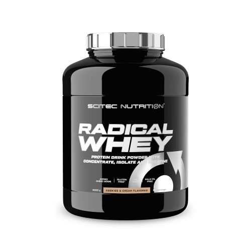 Radical Whey Pulver von Scitec Nutrition mit Cookies & Cream Geschmack in der 2KG Packung. Radical Whey – für alle, die mehr wollen als nur Eiweiß! Radical Whey von Scitec Nutrition ist mehr als nur ein klassisches Proteinpulver. Die Kombination aus hochwertigem Whey-Protein, zusätzlichen Aminosäuren und Creatin macht es zur idealen Unterstützung für dein Training. Ob vor oder nach dem Training – Radical Whey versorgt deinen Körper mit allem, was er braucht.. Erhältlich in vier köstlichen Geschmacksrichtungen: Schokolade, Vanille, Cookies & Cream und Salz-Karamell. Wähle zwischen 1 kg und 2 kg – ganz nach deinem Bedarf. Radical Whey ist die smarte Wahl für alle, die mehr erwarten.