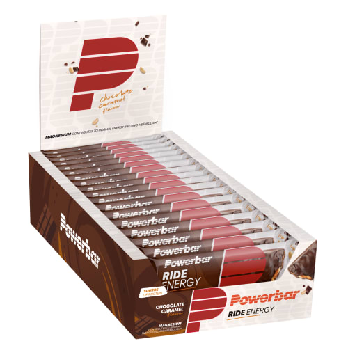 Ride Energy Bar Riegel von Powerbar mit Chocolate Caramel Geschmack in der 0.99KG Packung. PowerBar – Ride-Bar 55 g Der Riegel für zusätzliche Energie und eine gute Regeneration! Ride Bar von PowerBar – Vorteile: einzigartiger Energieriegel hochwertiges Protein enthalten (fast 11g je Riegel) mit mehr als 90mg Magnesium angereichert ohne künstliche Farb- und Konservierungsstoffe Was beinhaltet der Ride Bar? Der Energie Riegel beinhaltet eine Kombination aus Eiweiß (mehr als 10g je Riegel) und Kohlenhydraten (25g), angereichert mit Magnesium. Für wen ist der Ride Bar geeignet und wofür wird er verwendet? Bei lang anhaltenden und intensiven Trainingseinheiten oder Wettkämpfen bietet der Ride Energy Bar eine Unterstützung der Energieversorgung vor oder während des Trainings. In zwei leckeren Geschmacksrichtungen (Schokolade- und Erdnuss-Karamell) erhältlich, liefert er schnell verfügbare Kohlenhydrate und wertvolle Eiweißquellen für die Aufrechterhaltung der Leistungsfähigkeit und bildet eine Grundlage für Muskelwachstum und eine gute Regeneration.Der Ride Bar ist ein echtes „Must Have“ für den ernsthaft und lang trainierenden Ausdauersportler. Neben den bereits erwähnten Inhaltsstoffen ist auch eine gute Portion Magnesium zugefügt, die die normalen Muskelfunktionen unterstützen. Der einzeln verpackte Riegel ist ideal zur Nutzung vor dem Training oder unterwegs. Wie wird der Ride Bar verwendet? Du kannst 1-3 Riegel am Tag verzehren, vorzugsweise 1 innerhalb der letzten Stunde vor dem Training. Ride Bar von PowerBar – der Riegel für zusätzliche Energie und beste Regeneration!