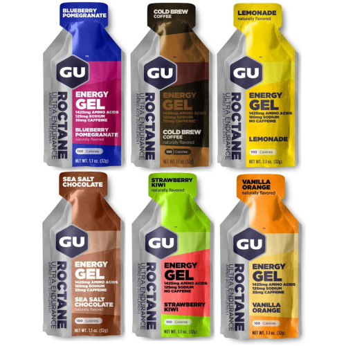 Roctane Energy Gel 6er Testpaket GU Energy Labs mit Gemischt Geschmack in der 0.192KG Packung. Roctane Energy Gels GU Roctane Energy Gels versorgen Athleten aller Sportarten und Leistungsstufen mit hochwertiger und langanhaltender Energie. Jede Portion Gel bietet eine ausgewogene Mischung aus Kohlenhydraten, Elektrolyten und Aminosäuren. Nicht enthalten sind dagegen unnötige Mengen an Vitaminen, künstlichen Geschmacksstoffen und sonstigen Zusätzen, die nicht für die Versorgung während des Sports gebraucht werden. GU Roctane ist einfach einzunehmen, schmeckt gut und bringt genau das mit, was für Höchstleistungen notwendig ist. Was macht die GU Roctane Gels besonders? Neben dem einzigartig leckeren und natürlichen Geschmack heben sich GU Roctane Gels durch ihre Inhaltstoffe und deren Zusammensetzung hervor. Alle Inhaltsstoffe wurden perfektioniert um dich nachhaltig mit Energie zu versorgen – ohne Schnickschnack. Im Vergleich zu den herkömmlichen GU Gels haben Roctane Gels rund 4-mal mehr Aminosäuren Wie viele GU Roctane Gels brauche ich für meinen Sport? Die Menge an GU Gels die du benötigst hängt von der Art und Dauer der sportlichen Aktivität ab. Bei einer mittleren Intensität empfehlen sich 1-2 Gels pro Stunde, bei besonders hoher Intensität können 2-3 Gels pro Stunde genutzt werden. Zur Einnahme der Gels mindestens 150ml Flüssigkeit trinken. GU for it!