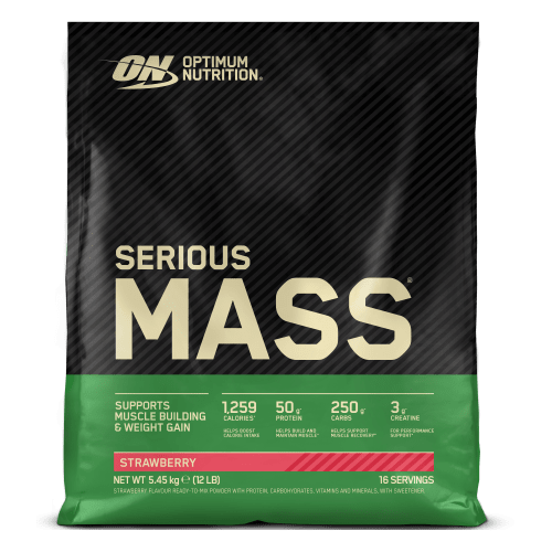 Serious Mass Pulver von Optimum Nutrition mit Strawberry Geschmack in der 5.45KG Packung. Serious Mass – der beliebte Weigt Gainer von Optimum Nutrition mit Whey, Eiweiß und Casein. Was ist Serious Mass von Optimum Nutrition und wie wirkt es? Leistungs- und Kraftsportler haben oftmals einen erhöhten Bedarf an Kalorien und Nährstoffen, der über die normale Essenszufuhr nicht zu decken ist. Mit Optimum Nutrition Serious Mass, einer hochwertige Mischung aus Kohlenhydraten und Eiweißen, werden dem Körper pro Shake 1250 Kalorien, 50 Gramm eines wertvollen Proteingemischs aus Whey, Casein und Ei sowie ganze 250 Gramm Kohlenhydrate und 25 Vitamine zugeführt. Zusätzlich wurde Serious Mass noch mit Creatin Monohydrat, Glutamin und Glutamin Peptiden ergänzt. Das Produkt eignet sich damit optimal zur Gewichtszunahme und Rundumversorgung des Körpers bei hohem Energiebedarf. Für wen ist das Produkt geeignet? Für Hochleistungssportler, Bodybuilder und Hardgainer mit hohem Energiebedarf – zum Aufbau von Muskelmasse und zum Muskelerhalt. Anwendungstipps/Dosierung Je nach Bedarf ist 1 Portion pro Tag zu sich zu nehmen. Vorzugsweise nach dem Training oder nach dem Aufwachen trin…