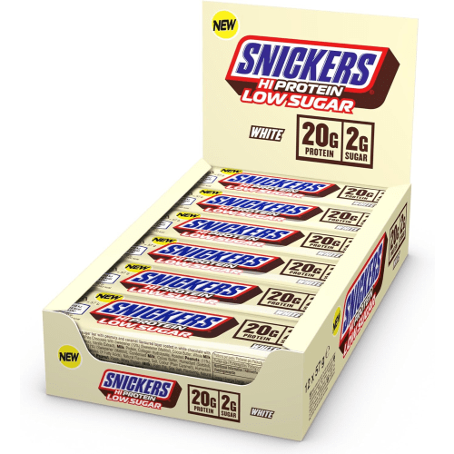 Snickers Low Sugar High Protein Bar Riegel von Mars Protein mit White Chocolate Geschmack in der 0.684KG Packung. Snickers Low Sugar High Protein Bar von Mars Protein Mit dem Snickers Low Sugar High Protein Bar hat Mars Protein einen hervorragenden Riegel entwickelt. Den beliebten und bekannten Schokoriegel gibt es jetzt mit der Extraportion Eiweiß bei gleichzeitig niedrigem Zuckergehalt. Mit einer Größe von 57g und ca. 20g Eiweiß eignet er sich perfekt als ein proteinreicher Snack für zwischendurch. Erhätlich ist der Snickers Low Sugar High Protein Bar in zwei unwiderstehlichen Geschmacksrichtungen – Milk Chocolate und White Chocolate. Der Snickers Low Sugar High Protein Bar kombiniert den einzigartigen Snickers-Geschmack mit wenig Zucker!