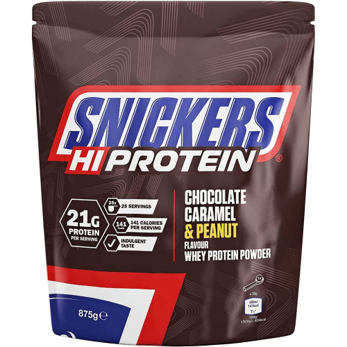 Snickers Protein Powder Pulver von Mars Protein mit Snickers Geschmack in der 0.875KG Packung. Snickers Protein Powder von Mars Protein Jeder kennt den unwiderstehlichen Geschmack von Snickers Riegeln. Diesen Geschmack gibt es nun auch als Whey Protein, allerdings viel kalorienärmer. Eine Portion des Whey Proteins beinhaltet 142kcal, 3,5g Fett, 3,7g Zucker und ganze 20,9g Protein. Somit eignet sich das Whey Pulver bestens zum Einsatz für den Muskelaufbau. Das Snickers Protein Pulver kombiniert den einzigartigen Snickers-Geschmack mit einer ordentlichen Ladung Protein!
