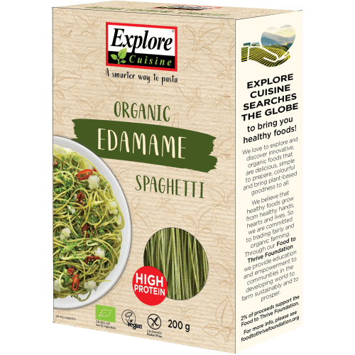Spaghetti aus Edamamebohnen bio Explore Cuisine. Spaghetti aus Edamamebohnen bio von Explore Cuisine Edamame Spaghetti von Explore Cuisine ist mild im Geschmack und bietet ein ideales Gleichgewicht an pflanzlichen Proteinen und Ballaststoffen. Perfekt zu einer Pilzsauce oder in Olivenöl geschwenkt. Eco control number: CN-BIO-141 Dein veganer Nudelgenuss!