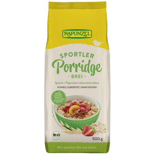 Sportler Brei bio Rapunzel. Der Sport beginnt beim Frühstück! Eco control number: DE-ÖKO-006 Zutatenliste: Haferflocken* (28%), Dinkelflocken* (20%), Süßlupinenmehl* (18%), Datteln*, Aprikosen*, gehackt (8%) (Aprikosen*, Reismehl*), Sojafleisch* (6%), Amaranthmehl*, geröstet (4%), Erdbeeren* (2,4%), Leinmehl*, Bourbon Vanille*.* = Zutaten aus ökol. Landbau. Nettogewicht: 0,5kg Allergene: Enthält Hafer, Dinkel (Gluten), Lupine, Soja. Verzehrempfehlung: ideale Mahlzeit vor und nach dem Sport . Nicht nur für Sportler das perfekte Frühstück: Der Sportler Brei von Rapunzel vereint neben verschiedenen Getreideflocken auch gehackte Datteln und Aprikosen sowie Sojaschnetzel. Er kann Dir somit Kohlenhydrate und Eiweiße par excellence liefern und Deinen Tag bereichern. Völlig egal, ob Du Dich neuer Bestleistungen im Sport widmen willst oder im Büro- oder Unialltag gut aussehen möchtest – mit dem Kraftfrühstück Sportler Brei von Rapunzel gelingt Dir alles!