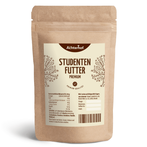 Studentenfutter vom Achterhof. Sehr schöne ausgeglichene Mischung zum Genießen. Durch den nicht übermächtigen Anteil an Rosinen eine wirkliche Premiumqualität. Von Paranuss bis Mandel: GeNUSS vom ersten bis zum letzten Bissen Liebst du die Abwechslung? Ihre wertvollen Inhaltsstoffe haben alle Nüsse und Kerne gemeinsam, im Geschmack unterscheiden sie sich aber zum Teil sehr voneinander. Wenn du diese Mischung kaufen möchtest, hast du nicht nur den Vorteil, dass Studentenfutter lecker ist. Du hast auch die Wahl zwischen cremigen Cashewkernen, knackigen Haselnüssen und edlen Paranusskernen. Um nur eine kleine Auswahl der enthaltenen Kostbarkeiten zu nennen. Wonach steht dir der Sinn? Egal ob milder Gaumenschmeichler oder herzhafter Snack. Du kannst sie alle haben und musst dich nicht entscheiden. Studentenfutter vielfältig und lecker. Und trifft bestimmt auch deinen Geschmack. Studentenfutter ist wohl allgemeinhin bekannt und die Erklärung des Namensursprungs ist äußerst simple. Der Name rührt daher, dass damalige Studenten während des Unterrichts Rosinen und Nüsse aßen, um die Energiekonserven aufzuladen und wieder zu steigern. So entstand der Name „Studentenfutter“. Auch heute ist die bunte Nussmischung mit Weinbeeren ein beliebter Snack und das nicht nur bei Studenten.