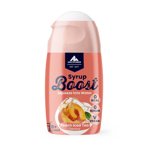 Syrup Boost Multipower mit Eistee Pfirsich Geschmack in der 0.065KG Packung. Was ist der Syrup Boost von Multipower und wie wirkt es? Der Syrup Boost von Multipower ist ein hochwertiges Qualitätsprodukt der Marke Multipower. Multipower entwickelt innovative Proteinpulver sowie weitere effektive Supplements, die dich dabei unterstützen, dein persönliches Ziel zu erreichen. Eine Flasche reicht für mehr als acht Liter – perfekt für zu Hause, im Büro oder unterwegs. Individuell dosierbar – Konzentrat einfach mit kaltem oder sprudelndem Wasser mischen. und die Intensität des Getränks selbstbestimmen. Voller Geschmack – kaum Kalorien!