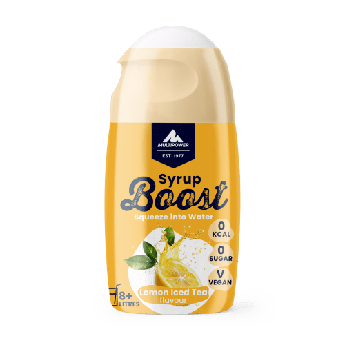Syrup Boost Multipower mit Eistee Zitrone Geschmack in der 0.065KG Packung. Was ist der Syrup Boost von Multipower und wie wirkt es? Der Syrup Boost von Multipower ist ein hochwertiges Qualitätsprodukt der Marke Multipower. Multipower entwickelt innovative Proteinpulver sowie weitere effektive Supplements, die dich dabei unterstützen, dein persönliches Ziel zu erreichen. Eine Flasche reicht für mehr als acht Liter – perfekt für zu Hause, im Büro oder unterwegs. Individuell dosierbar – Konzentrat einfach mit kaltem oder sprudelndem Wasser mischen. und die Intensität des Getränks selbstbestimmen. Allergene: Enthält Schwefeldioxid und Sulfite. Verzehrempfehlung: Ganz nach Belieben genießen! Voller Geschmack – kaum Kalorien!