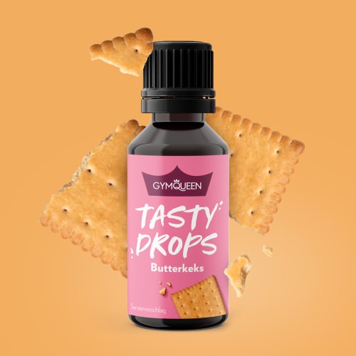 Tasty Drops GYMQUEEN mit Butterkeks Geschmack in der 0.03L Packung. WAS SIND TASTY DROPS? Tasty Drops sind zucker-, fett- und kalorienfreie Geschmacktropfen, die du vielseitig in deinen Alltag integrieren kannst, um Speisen und Getränke zu süßen. Ob in Quark, Joghurt, Müsli oder Getränken – mit den Tasty Drops zauberst du jederzeit und überall ein wahres Geschmackserlebnis. FÜR WEN SIND TASTY DROPS GEEIGNET? Tasty Drops sind die ideale Wahl für dich, wenn du deinen Kaffee, Joghurt, deine Backkreation oder jede andere Grundlage deiner Wahl auf ein neues Geschmackslevel bringen möchtest, ohne dabei zusätzliche Kalorien aufzunehmen. Zudem eignen sich Tasty Drops optimal für eine laktosefreie, vegane oder glutenfreie Ernährungsweise. Das Geschmackserlebnis der besonderen Art! Hebe deine Speisen und Getränke mit unseren zucker- und fettfreien Tasty Drops auf ein neues Geschmacksniveau und kreiere zahlreiche Leckereien und abwechslungsreiche Drinks, die dir deinen Alltag versüßen.