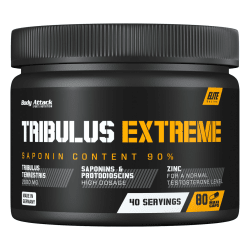 Tribulus Extreme Kapseln von Body Attack. Body Attack – Tribulus Extreme Tribulus Extreme Kapseln von Body Attack enthalten den hochwertigen Pflanzenextrakt Tribulus Terrestris (2000mg je Tagesdosis von 2 Kapseln), mit einem Saponinegehalt von ca. 90% und einem Protodioscinegehalt von mehr als 20%. Zudem wurde Zink beigefügt, das zur Erhaltung eines normalen Testosteronspiegels beiträgt und an der Proteinsynthese beteiligt ist, und Vitamin B5 (Pantothensäure – trägt zu einer normalen Synthese und einem normalen Stoffwechsel von Aminosäuren bei). Tribulus Terrestris Supplemente werden vielfach von Bodybuildern und Kraftsportlern in Definitions- und Muskelaufbauphasen verwendet, in Verbindung mit einer eiweißreichen, eher kohlenhydratarmen Ernährung. Vorteile von Tribulus Extreme: 2000mg Tribulus Terrestris Extrakt je Tagesdosis Tagesdosis enthält 1800mg Saponine mit Vitamin B5 und Zink praktische Kapselform Verzehrempfehlung: 2 Kapseln mit reichlich Flüssigkeit (300 ml) vorzugsweise vor oder nach einem Muskeltraining verzehren. An Tagen ohne Training 2 Kapseln mit reichlich Flüssigkeit (300 ml) morgens nach dem Aufstehen oder abends vor dem Schlafengehen. Tribulus Extreme (80 Kapseln) hat die PZN 04705329. Der in den beliebten Maxi-Caps enthaltene Tribulus Extrakt verfügt nicht nur über den gewöhnlichen Inhaltsstoff Saponine, sondern enthält außerdem Protodioscine.