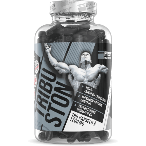 Tribuston Kapseln von FREY Nutrition. FREY Nutrition – Tribuston Tribuston von FREY Nutrition ist ein Tribulus-Kombi-Produkt der neuesten Generation. Es beinhaltet neben Tribulus Terrestris den außergewöhnlichen Stoff Beta Ecdysterone sowie das wichtige Spurenelement Zink in einer optimal zusammengestellten Nährstoff-Matrix. TRIBUSTON wurde insbesondere für weit fortgeschrittene Sportler konzipiert, weshalb es gerne von stark ambitionierten Athleten eingesetzt wird. Vorteile Tribulus + Beta Ecdysterone + Zink 90 % Saponingehalt 26 % Protodioscinanteil mit maximaler Reinheit einfache Dosierung durch Kapselform Tribuston (180 Kapseln) hat die PZN 10732603. TRIBUSTON – Hochwertige Tribulus-Zink-Kombination für ambitionierte Athleten TRIBUSTON ist eine leistungsstarke Tribulus-Zink-Formel, die speziell für fortgeschrittene Sportler entwickelt wurde. Es kombiniert hochkonzentrierten Tribulus Terrestris mit dem essenziellen Spurenelement Zink in einer optimal abgestimmten Matrix. Dank seines besonders hohen sterodialen Saponingehalts gehört TRIBUSTON zu den fortschrittlichsten Tribulus-Produkten auf dem Markt und wird bevorzugt von ambitionierten Athleten genutzt. Tribulus Terrestris – Maximale Saponinkonzentration Tribulus Terrestris ist eine pflanzliche Substanz, die aus verschiedenen Arten der Tribulus-Gewächse gewonnen wird. Die darin enthaltenen Saponine spielen eine besonders wichtige Rolle und sind entscheidend für die Qualität des Produkts. Jede Kapsel TRIBUSTON enthält 1000 mg reinen Tribulus-Extrakt mit einem beeindruckenden 80 % Saponingehalt sowie einem Protodioscinanteil von 26 % – eine der höchsten Konzentrationen auf dem M…