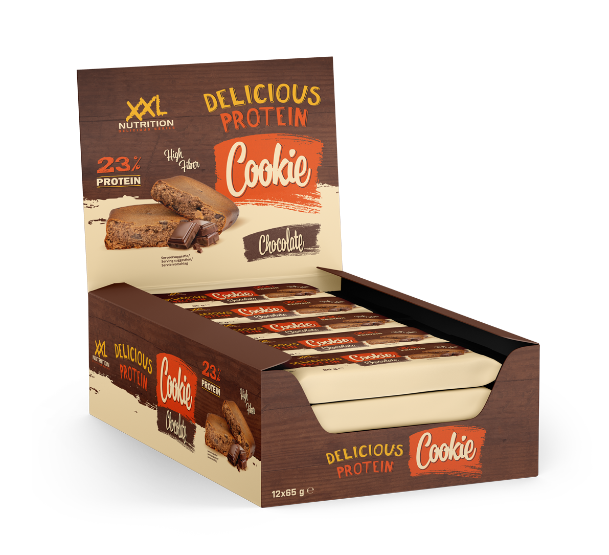 Herrliches Protein Cookie Willkommen in einer Welt, in der Sie Kekse essen und gleichzeitig Ihren erhöhten Proteinbedarf decken können. Das köstlichen Protein Cookie gibt Ihnen einen super leckeren Imbiss, aber außerdem satte 15 Gramm Protein! Und hier hört es nicht auf, denn neben viel Protein enthält das Protein Cookie viele Ballaststoffe und kaum Zucker. Wenn Sie sie also noch heute ausprobieren, erhalten Sie ein wohl sehr leckeres Post-Workout! High Protein – Low Sugar Cookie Viele Protein Cookies auf dem Markt haben einen vergleichbaren Eiweißanteil von 23 %, schaffen es aber nicht, den bitteren Geschmack der Proteine ausreichend zu verhüllen, daher sind sie nicht gerade schmackhaft. Wir haben hochwertige Proteine (Milch- und Molkenprotein) verwendet. In Kombination mit genau der richtigen Menge an Süßstoff hat dies zu einem wahnsinnig guten Geschmack geführt. Und mit maximal 2,7 Gramm Zucker pro Keks sind sie auch korrekt in