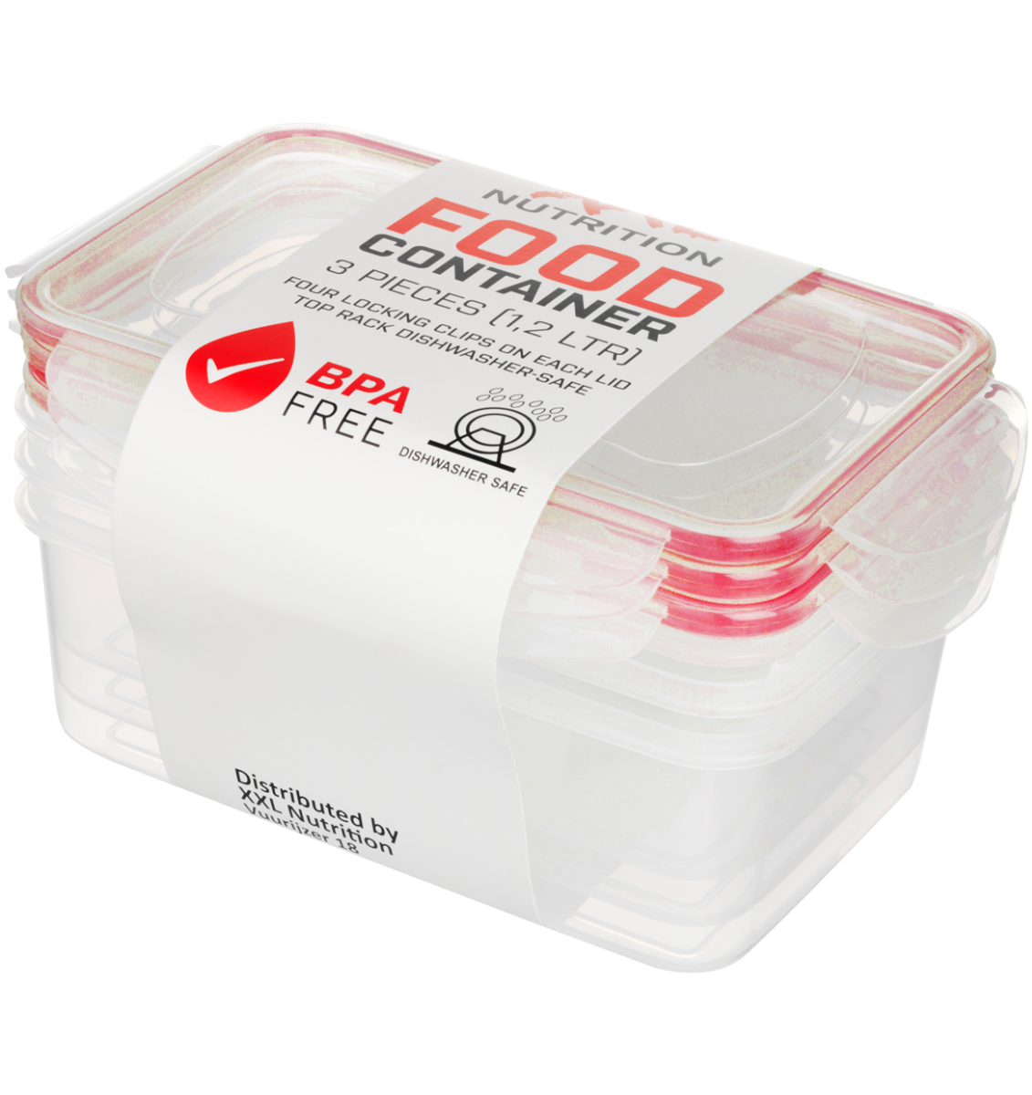 XXL Nutrition hat ab jetzt auch Frischhalte-Boxe! Die Boxe haben einen Inhalt von 1,2L und sind natürlich BPA-frei. Die Boxe können einfach in der Spülmachine, Mikrowelle oder im Gefrierschrank. Die XXL Nutrition Frischhalte Boxe können in einem 3er-Set. Jede Box hat einen 1,2L Inhalt. Die Boxe können einfach geschlossen werden mit dem ‚Click-System‘. Die Boxe sind 20,5cm (L) x 13cm (B) x 7cm (H) groß.