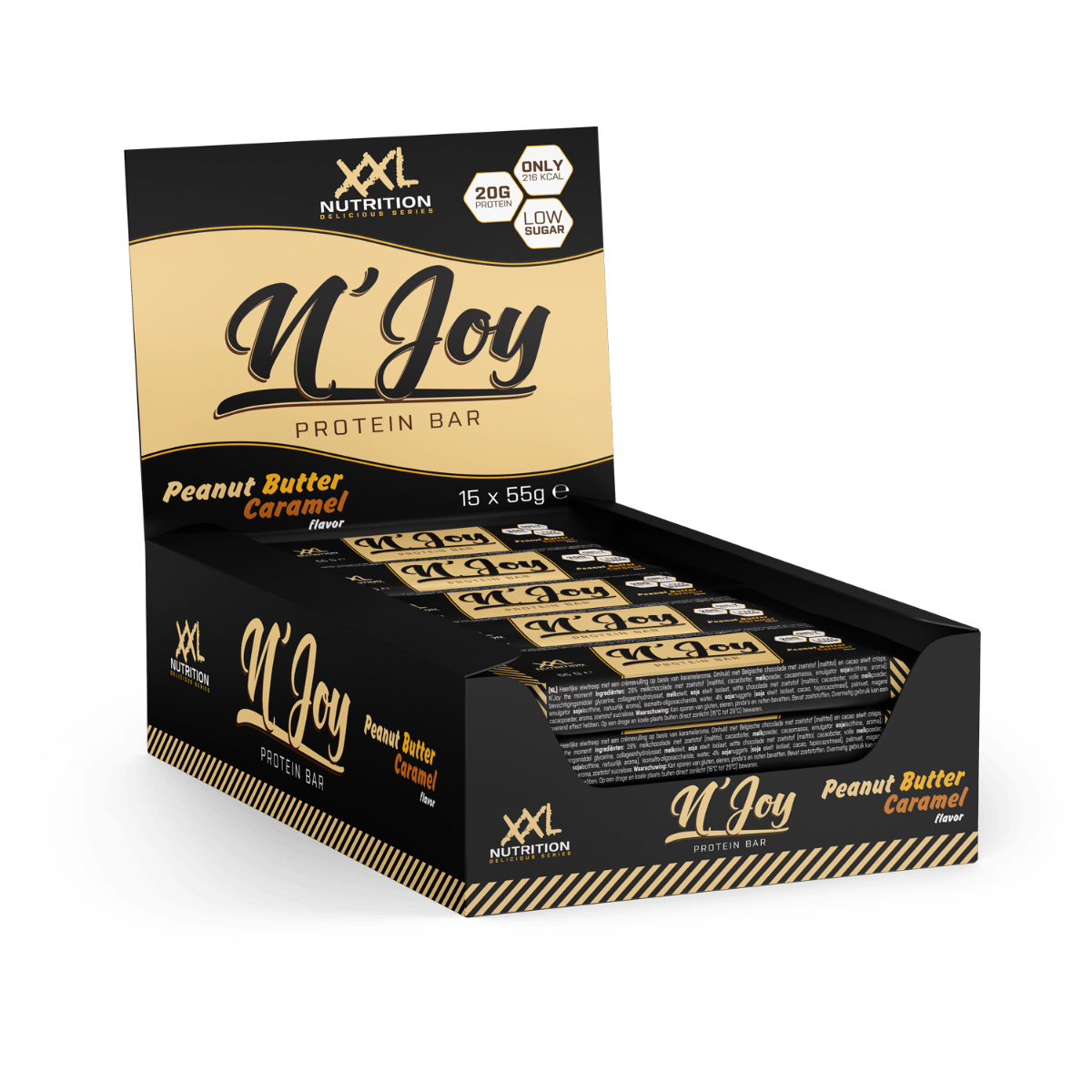 Ein cremiger Riegel, knuspriges Topping, reich an Geschmack und reich an Protein. Es hat alles, was man in einem Proteinriegel sucht! Der Delicious Protein Bar ist seit Jahren einer unserer beliebtesten Protein Riegel, da Geschmack und Nährwert gut kombiniert sind. Es war jedoch an der Zeit für ein neues Konzept, um diesen Riegel auf jeder Front noch zu verbessern. Es ist uns gelungen und eine neue Ära ist angebrochen: Dies ist N’Joy Protein Bar! * Mehr Proteine * Weniger Zucker * Weniger gesättigte Fette * Mehr Geschmack * Ein köstlich cremiger Riegel mit knusprigem Topping Köstliche Geschmacksrichtungen N’Joy Protein Bar ist verfügbar in 7 Geschmäcker: Vegan gesalzenes Karamell Ein köstlicher vegan gesalzenes Karamellgeschmack! Cookie Dough Unsere neueste Geschmacksrichtung und bereits sehr beliebt! Genießen Sie den Geschmack von Cookie Dough mit einem knusprigen Belag! Cookies & Cream Ein köstlicher Riegel
