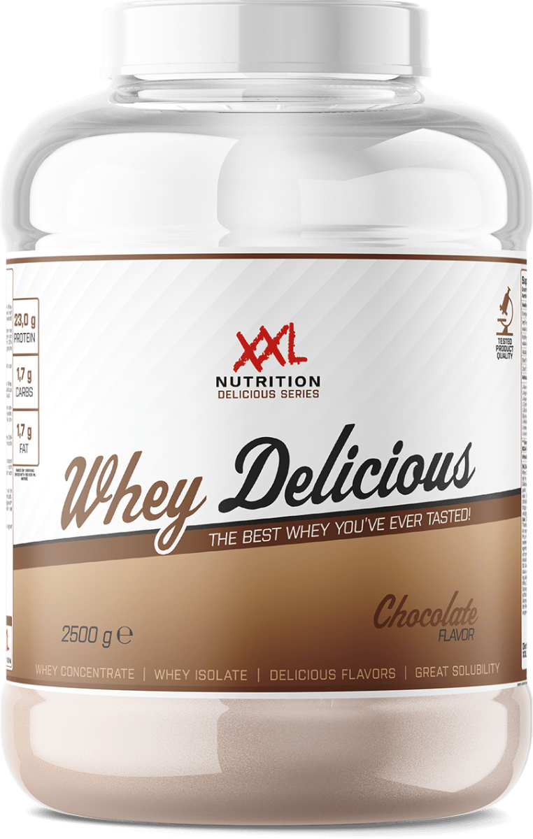 Whey Delicious beweist, dass das Trinken eines hochwertigen Eiweißshakes perfekt mit purem Genuss kombinierbar ist. Unser Bestseller – Whey Delicious – geht noch einen Schritt weiter. Es hat in Europa den neuen Standard für Eiweißshakes im Hinblick auf Qualität, Geschmackserlebnis und Preis gesetzt. Highlights * Molkenproteinisolat (40% Anteil) und Molkenproteinkonzentrat (60% Anteil) * Laborgetestet auf 78,5(!)% echten Proteingehalt (nicht Trockenstoffbasis) * Hohe Qualität * Ausgezeichnete Biologische Wertigkeit * Hoher Anteil an EAA sowie BCAA * Low Carb und Low Fat * Frei von Aspartam * Erhältlich in 21 wohlschmeckenden Geschmacksrichtungen Wichtiger hinweis Unser Whey Delicious ist laborgetestet auf 78,5 Gramm Proteingehalt! Nicht auf Trockenstoffbasis, sondern echter Proteinwert! Sehen Sie sich hier den Test an:  Labtest Whey Delicious