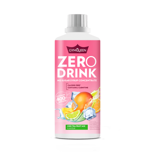 Zero Drink GYMQUEEN mit Fruchtmix-Eistee Geschmack in der 1L Packung. Eine ausreichende Wasserzufuhr ist für den Körper enorm wichtig! Wasser trägt nicht nur zur Erhaltung normaler körperlicher und kognitiver Funktionen bei, sondern auch zur Regulation der Körpertemperatur3. Wir von GYMQUEEN verstehen, dass es manchmal sehr herausfordernd sein kann, genug Wasser zu trinken. Damit du deinen Körper trotzdem auf leckere und einfache Art und Weise hydratisieren kannst, haben wir die GYMQUEEN Zero Drinks entwickelt! Die kalorienarmen, zuckerfreien1 Getränkekonzentrate sind angereichert mit den Vitaminen B1, B3, B6, B12 und Carnitin. Diese B-Vitamine unterstützen Stoffwechselprozesse2 und tragen zur normalen Funktion des Immunsystems2 bei, während das enthaltene L-Carnitin eine Rolle beim Fettstoffwechsel spielt. 1 Weniger als 4kcal bzw. 0,5g Zucker pro 100ml verzehrfertige Zubereitung. 2 Vitamin B12 trägt zu einem normalen Energiestoffwechsel bei. Vitamin B12 trägt zu einer normalen Funktion des Immunsystems bei. Vitamin B6 trägt zu einem normalen Energiestoffwechsel bei. Vitamin B6 trägt zu einer normalen Funktion des Immunsystems bei. Niacin trägt zu einem normalen Energiestoffwechsel bei. 3 Wasser trägt zur Erhaltung normaler körperlicher und kognitiver Funktionen bei. Wasser trägt zur Erhaltung einer normalen Regulierung der Körpertemperatur bei. Mit dem zuckerfreien 1 Getränkekonzentrat von GYMQUEEN kannst du im Handumdrehen unfassbar leckere, kalorienarme und zuckerreduzierte Limonaden, Schorlen und Cocktails kreieren. Die Zero Drinks enthalten darüber hinaus L-Carnitin und sind mit B-Vitaminen angereichert, um dein Immunsystems und deinen Stoffwechsel zu unterstützen.2