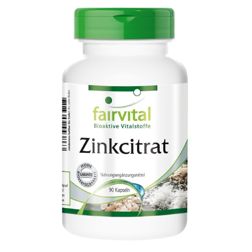 Zinkcitrat mit 50mg Zink Kapseln von Fairvital. Was ist Zinkcitrat von fairvital und wie wirkt es? Zinkcitrat von fairvital enthält Zink, ein wichtiges Spurenelement im menschlichen Körper. Zink trägt zu einer normalen Funktion des Immunsystems bei und zur Erhaltung normaler Haare, Haut und Nägel und Knochen. Es kann auch die Fruchtbarkeit von Frauen und Männern unterstützen. Zink beeinflusst zudem die DNA- und die Proteinsynthese. Dieser Allrounder kann Dir in jeder Hinsicht mehr Fitness verschaffen und Dir im Büroalltag oder bei sportlichen Belastungen ein guter Gefährte sein. Für alle aktiven Menschen ein sinnvolles Supplement! Zink in praktischer Kapselform!